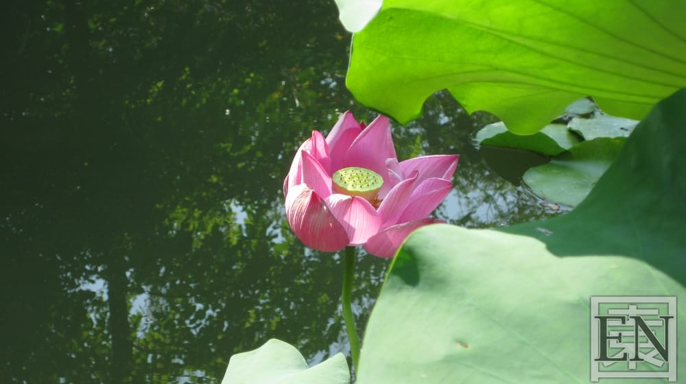 Der Garten und das Haus sind wirklich schön! Vor allem auch der Seerosenteich. Hier erwischte ich auch eine einigermaßen fotografierbare geöffnete Lotusblüte.