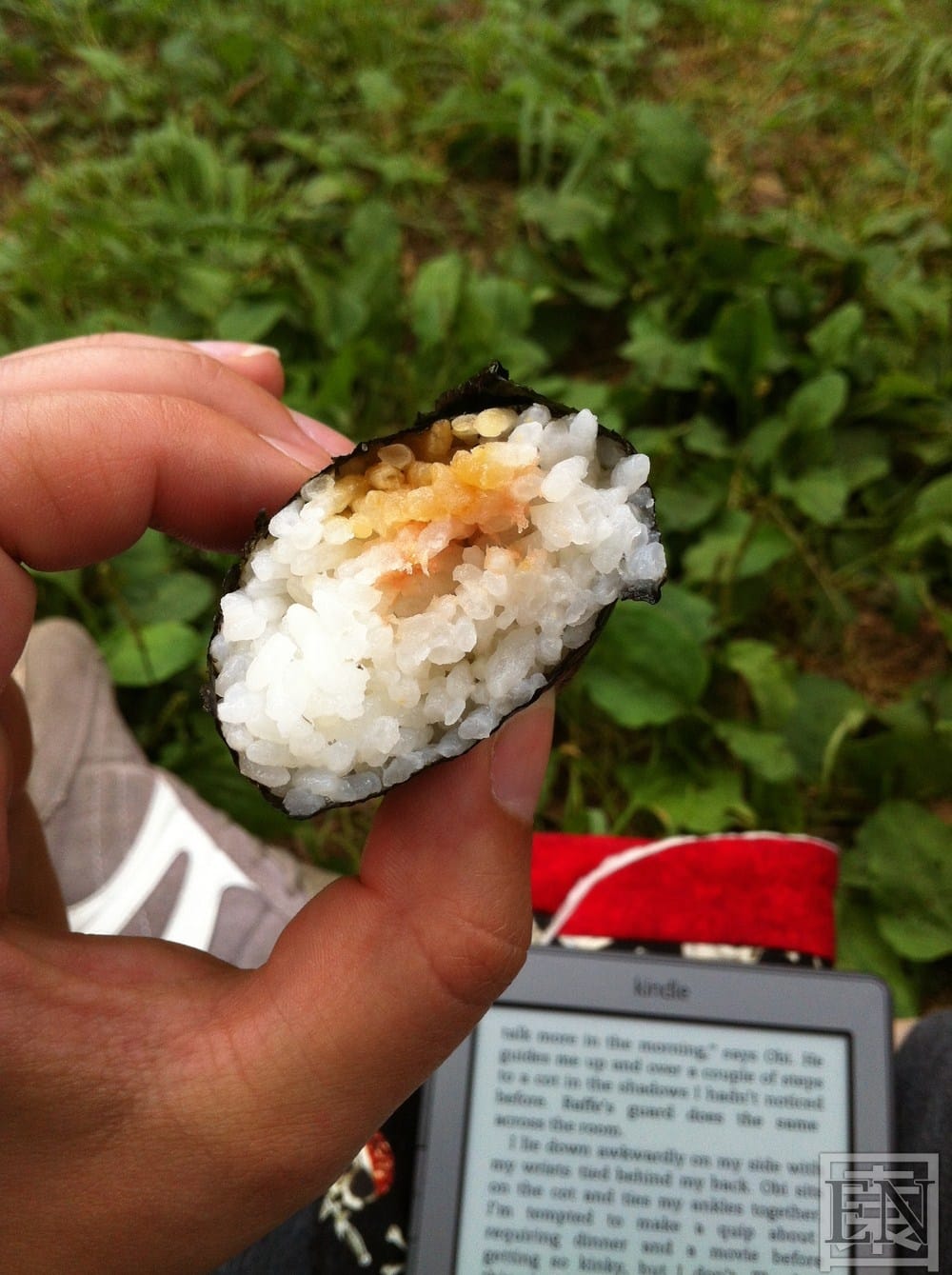 Armbänder mussten dann auch noch sein und am Ende der Straße (bzw. am Anfang, bin einmal hin und zurück gelaufen) habe ich sogar noch den 100¥ Shop gefunden und war sehr enttäuscht. Da finde ich den in Asaka über’m Maruetsu besser.. Nun noch beim Family Mart ein bisschen Mittag eingekauft und ab ging es in den Yoyogipark. Ich habe es mir unter einem Baum gemütlich gemacht und deshalb auch nichts von den gelegentlichen leichten Schauern mitbekommen. Seit länger Zeit habe ich endlich mal wieder etwas in meinem Buch geschmökert und dabei mein Mittag vertilgt.